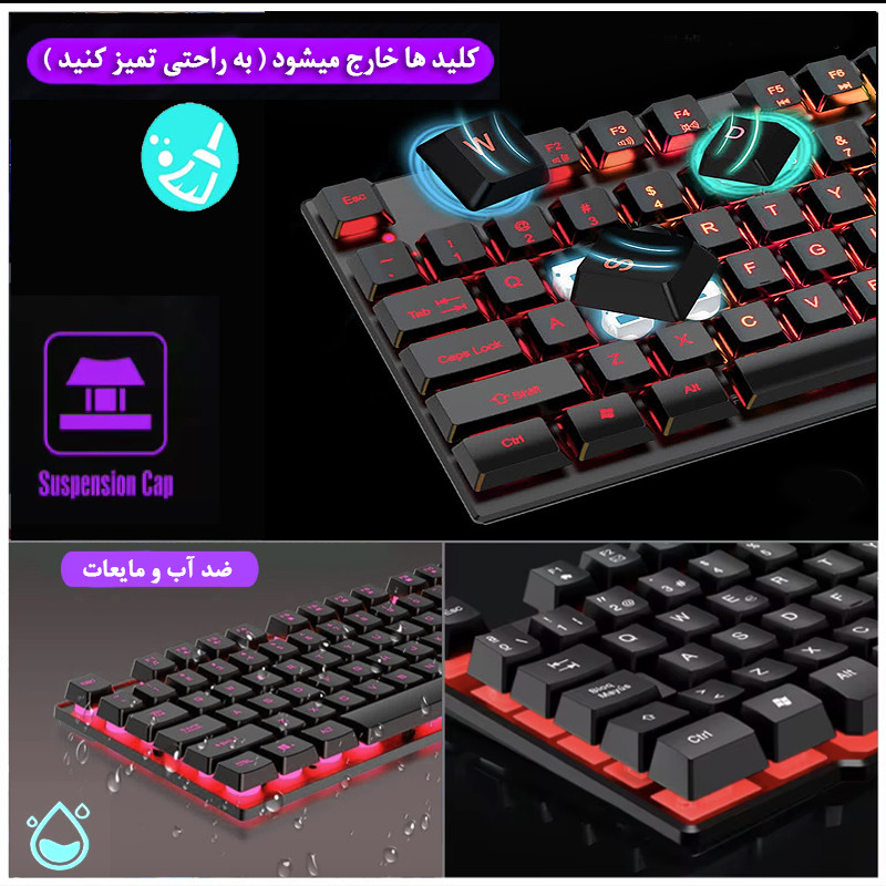 اگر به دنبال یک ست گیمینگ حرفه ای اما اقتصادی هستید که هم به مک و هم ویندوز متصل شود. این محصول بهترین گزینه است. این محصول دارای هدست” کیبورد”ماوس و ماوس پد است.طراحی این محصول به گونه ای است گه سازنده به همه نیاز های کاربر توجه ویژه ای داشته است. هدست این محول دارای صدای پخش استریو است و دارای بالشتک های طبی که در استفاده طولانی دچار خستگی نشوید.میکروفون این هدست با چرخش 360 درجه و ضد نویز طراحی شده است.کیبورد این محصول با طراحی ضد آب و مایعات طراحی شده است و با هر فماوری پاسخ سریع با سرعت نور پاسخ میدهد. و دارای بک لایت است گه با کلید های ترکیبی نور قابل تنظیم دارد.و ماوس این ست دقت بسیار بالای در رهگیری دارد و تا 3200 dpi قابل تنظیم توسط کاربر فقط با یک کلید به واسطه نیاز کاربر تغیر میکند. طراحی ارگونومیگ و دارای کلید بک و فووارد است .ماوس پد این محصول هم ضد لغزش با قابلیت آنتی باکتریال طراحی شده است و به شکل دور دوخت طراحی شده است تا دوام بسیار بالای داشته باشد.
