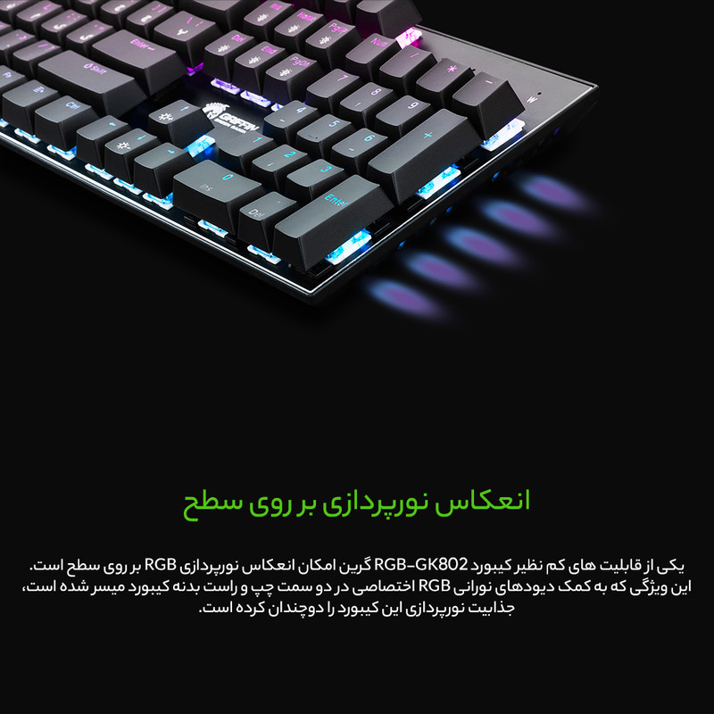 کیبورد گیمینگ گرین مدل GK802-RGB یکی از گزینههای حرفهای و باکیفیت برای گیمرهایی است که به دنبال یک کیبورد مکانیکال فولسایز با نورپردازی RGB هستند. این مدل، با سوئیچهای مکانیکال آبی و عمر بیش از ۵۰ میلیون کلیک، تجربهای سریع و لذتبخش را برای بازیهای رقابتی فراهم میکند. علاوه بر این، بدنهی مقاوم از جنس آلومینیوم و پلاستیک ABS، استحکام بالایی را برای استفادهی طولانیمدت تضمین میکند. کیبورد GK802-RGB از طریق کابل USB Type-C جداشونده با روکش کنفی به سیستم متصل میشود که علاوه بر راحتی در جابهجایی، دوام بالایی را نیز ارائه میدهد. نورپردازی RGB با ۱۸ جلوهی مختلف و قابلیت تنظیم شدت نور، علاوه بر ایجاد جلوهای جذاب، امکان شخصیسازی را برای کاربران فراهم کرده است. این مدل همچنین دارای قابلیت Anti-Ghosting و نرخ نمونهبرداری ۱۰۰۰ هرتز است که باعث افزایش دقت و جلوگیری از تداخل کلیدها هنگام فشردن چندین کلید همزمان میشود. با وجود ۱۰۴ کلید استاندارد و ۱۲ کلید میانبر، این کیبورد هم برای بازیهای حرفهای و هم برای کارهای روزمره، گزینهای کاربردی و همهجانبه محسوب میشود. سازگاری با تمامی سیستمعاملها، پایههای ضد لغزش و اتصال Plug & Play از دیگر ویژگیهای مثبت این محصول است. علاوه بر ویژگیهای فنی، ارگونومی بالا و طراحی استاندارد این کیبورد باعث شده که کاربران در استفادههای طولانیمدت دچار خستگی نشوند.